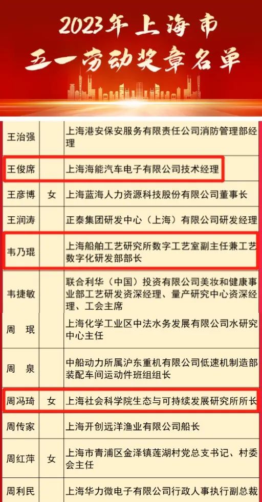 近日,2023年上海市五一劳动奖表彰大会隆重举行,学院3位校友荣获2023年上海市五一劳动奖章。