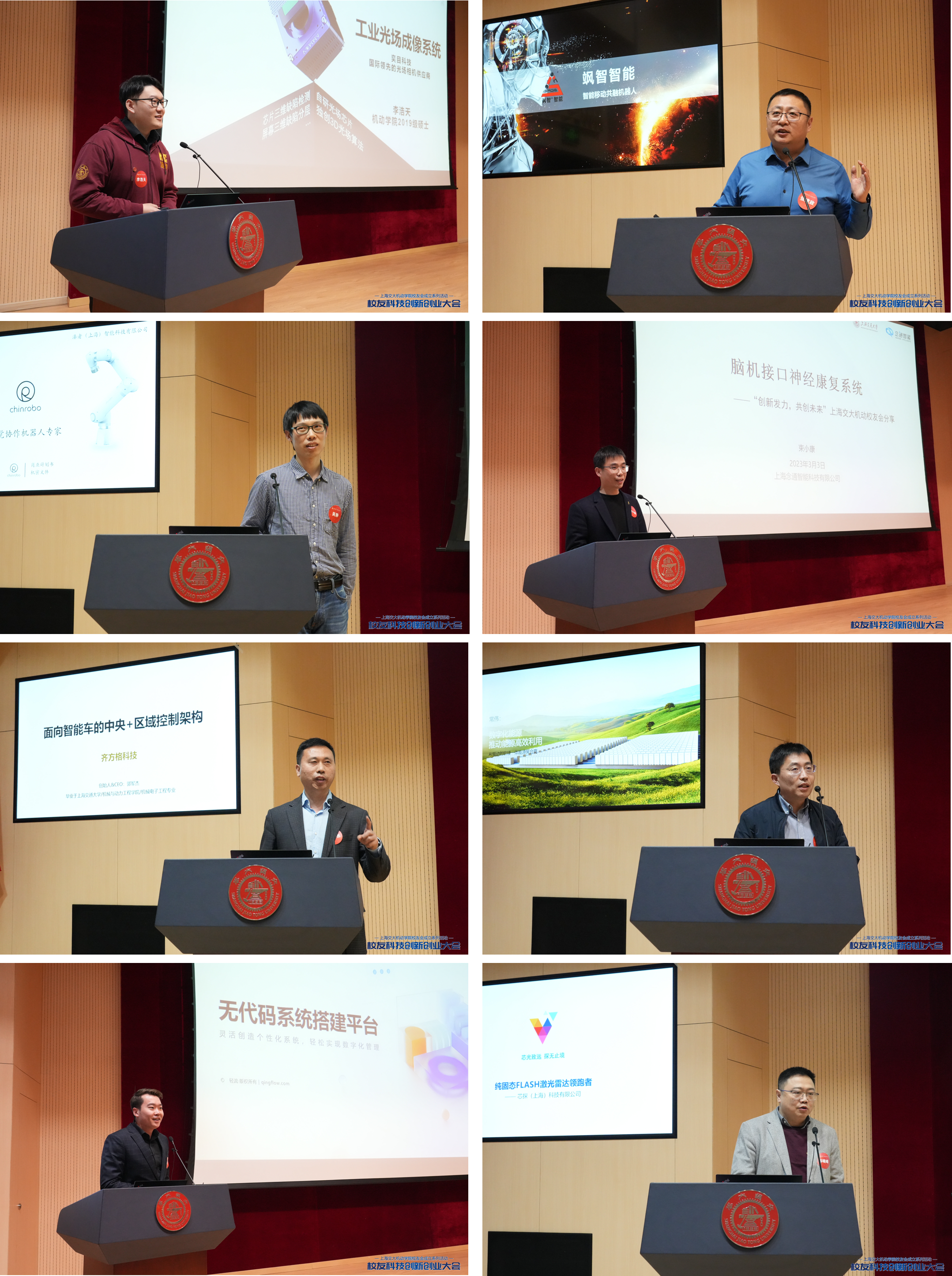 校友企业路演环节,2019届硕士校友、奕目科技联合创始人、CEO李浩天,2012届博士校友、飒智智能创始人、CEO张建政,2013届硕士校友、溱者智能研发总监吴静,2019届硕博校友、念通医疗创始人、CEO束小康,2005届本科校友、2008届硕士校友、齐方格科技创始人郭军杰,1999届本科校友、2002届硕士校友、乐驾智慧能源联合创始人、CTO常伟,2014届本科校友、易校信息科技董事、运营副总裁蒋益西,1993届本科校友、芯探科技联合创始人郑晓峰,分别进行了主题路演分享,并与现场校友、嘉宾进行了积极的互动交流。