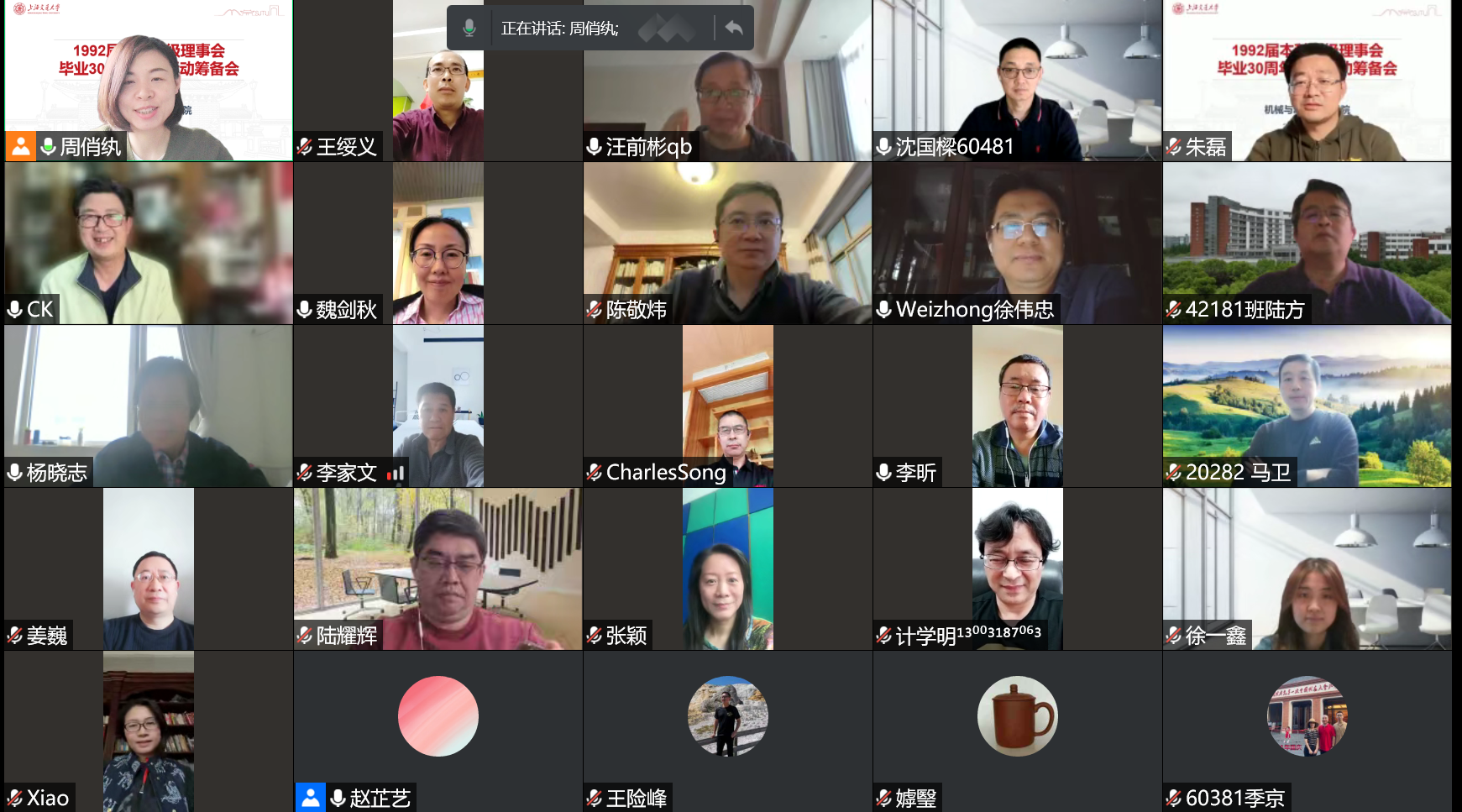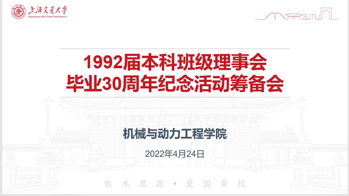 4月24日,1992届本科班级理事会毕业30周年纪念活动筹备会于线上成功举办,20余名班级理事云相聚,为毕业30周年的团聚献言献策。