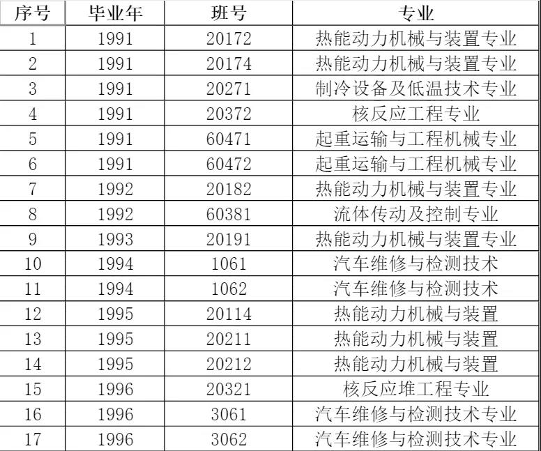 如您有以下班级【班长或同学的联系方式】,烦请告知我们,非常感谢您对学院校友工作的大力支持!