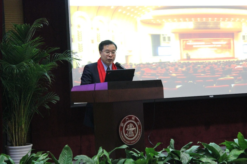 姜斯宪向校友们介绍了上海交大近些年的发展概况,他表示,母校的发展离不开校友们的支持,希望校友们继续关心母校发展,共同推动母校世界一流大学和世界一流学科建设。