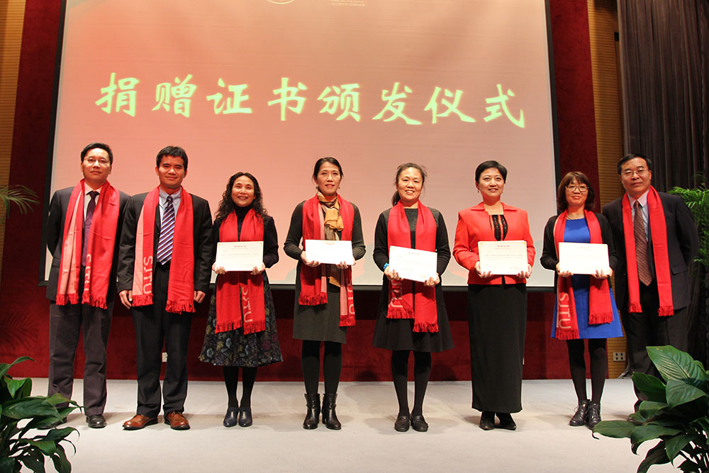 奚立峰和章俊良代表学院向“6系78级饮水思源校友基金”代表颁发了证书。章俊良介绍了历届课程项目展概况、成果展示及校友参与评审、合作企业等情况,希望通过更多校友的支持,建立多样化的合作和资助方式,让课程项目展成为联系学院与校友之间交流合作的重要纽带。