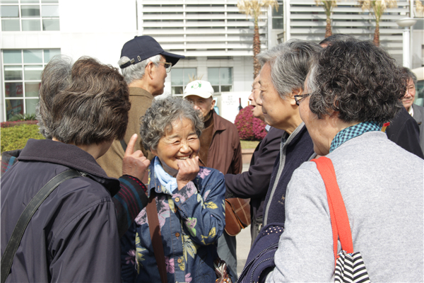 来自58届船舶蒸汽发动机系的邹慧君学长曾经参与过100周年的校庆活动,毕业后更是在学校执教多年至今,提到交大的变化也是感慨万分。“那时候的交大还叫做上海造船学院,图书馆旁边却是个打铁的地方,”学长指了指身后的老图书馆和学弟学妹们说道,“大家都是在这种环境下完成自己的作业和毕业设计。”提起昔日的学习时光,老校友们陷入回忆,找到了共鸣,围站在一起,向志愿者们描绘出昔日那段风雨兼程的求学成才路。